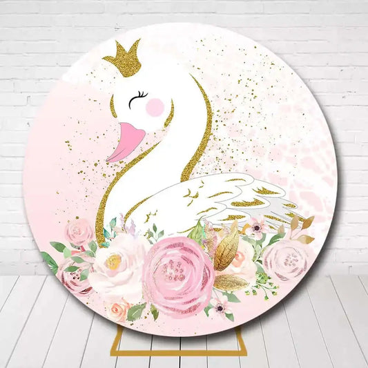 Pink Smile Gold Swan Princess Round Backdrop – Girls Birthday Party Decoration
