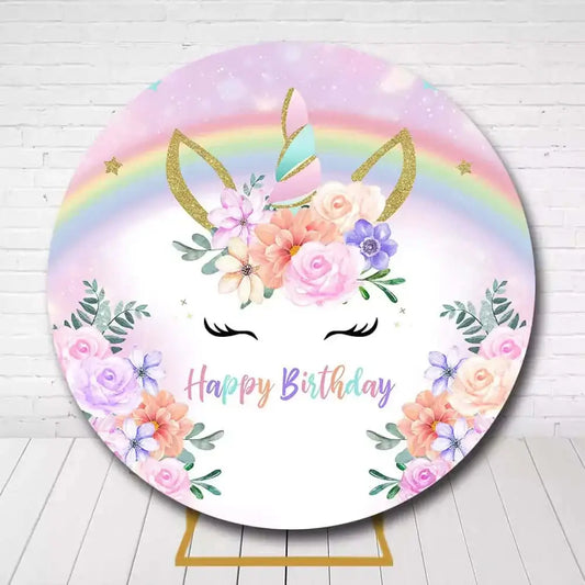 Unicorn Round Backdrop – Rainbow and Flowers Birthday Party Decoration