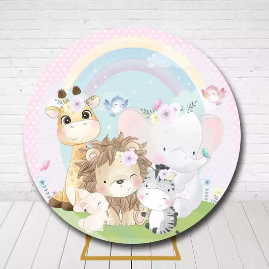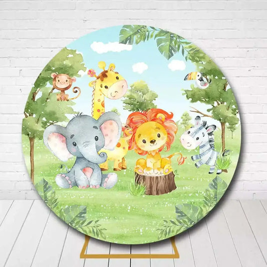 Cute Safari Animals Round Backdrop Set - Ideal for Baby Showers and Birthdays