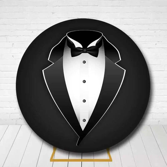 Gentleman Man Black Suits Round Backdrop for Adult Birthday