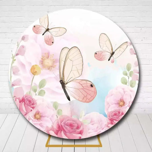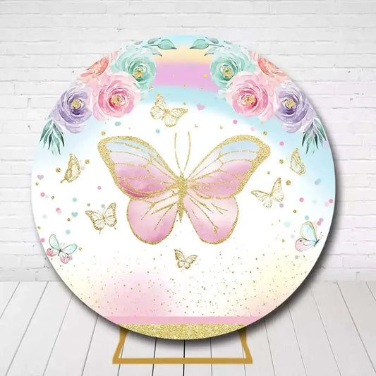 Butterfly Round Backdrop – Pastel Floral and Glitter Birthday Decoration