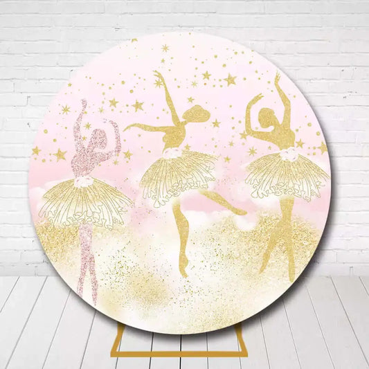 Pink Ballerina Round Backdrop – Gold Glitter Dancers Birthday Party Decoration