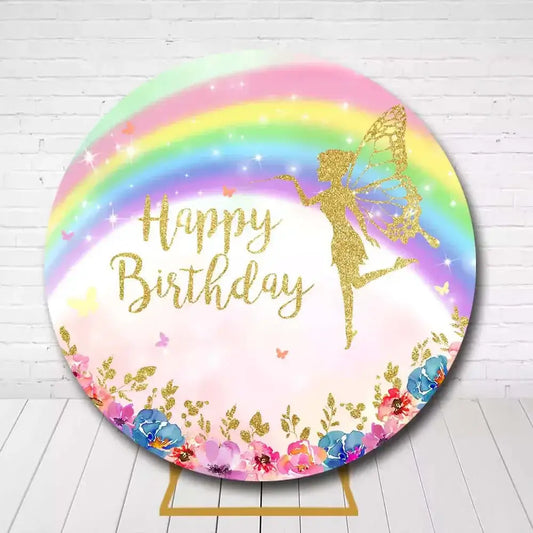 Fairy Rainbow Round Backdrop – Magical Girls Birthday Party Decoration
