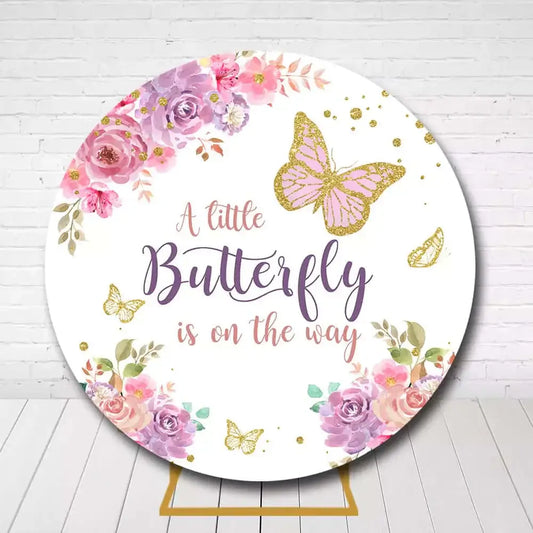 A Little Butterfly is on the Way – Butterfly Baby Shower Round Backdrop