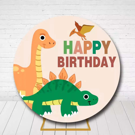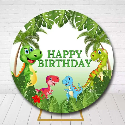 Cartoon Dinosaur Happy Birthday Round Backdrop – Kids Party Decoration