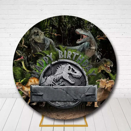 Jurassic Theme Circle Backdrop – Dino Happy Birthday Party Background