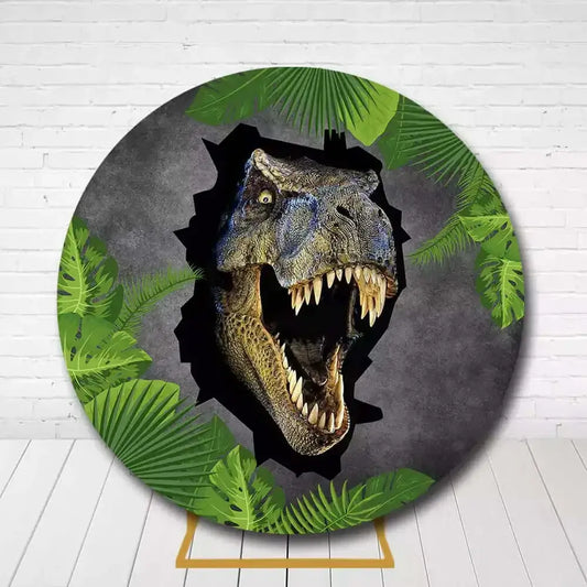 Jungle Dinosaur Round Backdrop – Prehistoric Birthday Party Decoration