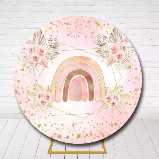 Pink Rainbow and Floral Boho Backdrop – Soft Pink and Gold Accents for Birthday Party