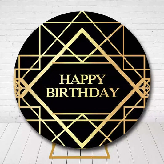 Black And Gold Gatsby Geometric Round Backdrop – Happy Birthday Party Decoration