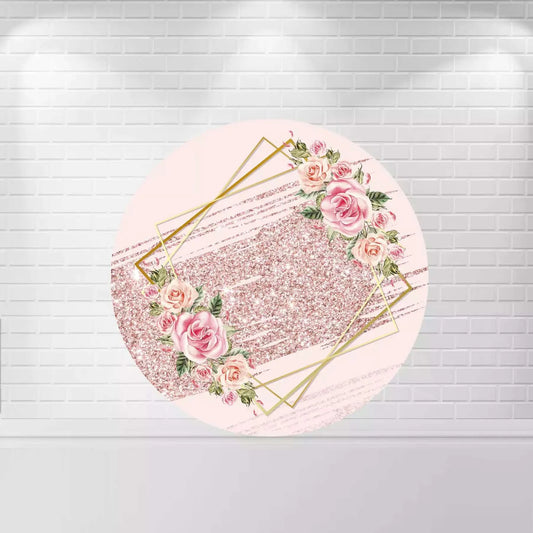 Flower Rose Gold Glitter Round Backdrop Cover Girls Sweet 16 Lady Wedding Birthday Party Circle Background Plinth Covers XQ2006
