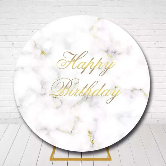 Luxury White Grey Marble Gold Lettering Happy Birthday Round Backdrop - Elegant Party Decoration