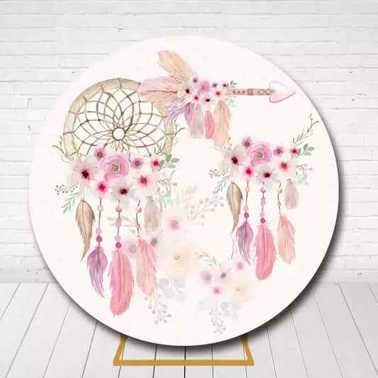 Floral Dreamcatcher Circle Backdrop – Pink Feathers for Girl’s Bohemian Party