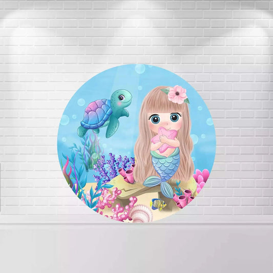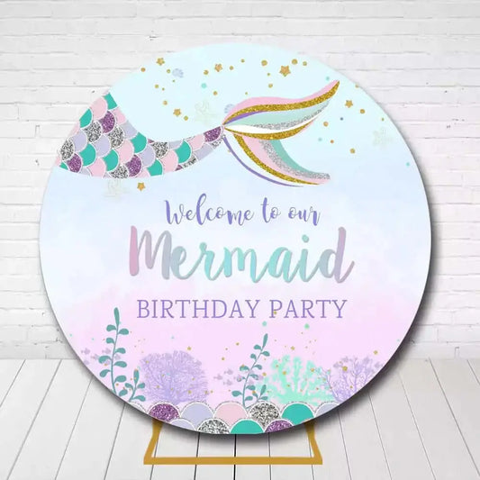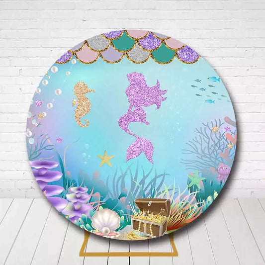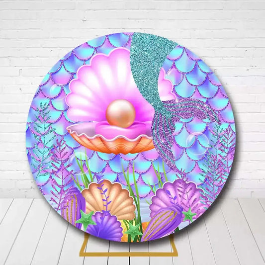 Mermaid Princess Birthday Round Backdrop - Under the Sea Glitter Seashell Decoration