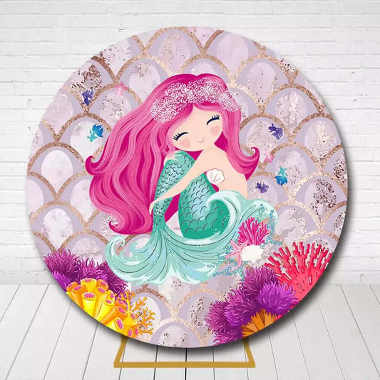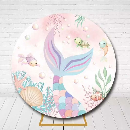Pink Under the Sea Mermaid Girl's Party Round Backdrop – Pastel Scales & Ocean Life