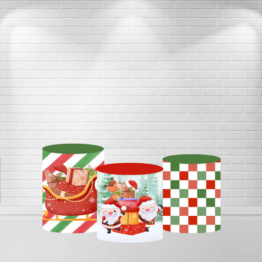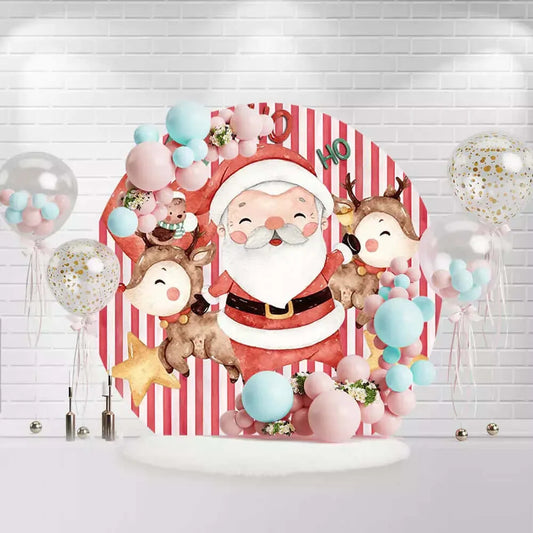 Christmas Day Round Backdrop Cover Cartoon Santa Claus Christmas Red White Striped Circle Background Snowman Cylinder Covers JL1201