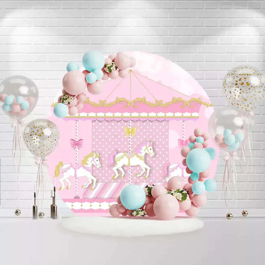 Pink Carousel Theme Round Backdrop Cover Amusement Park Girls Newborn Baby Shower 1st Birthday Party Background Plinth Covers SSX0001