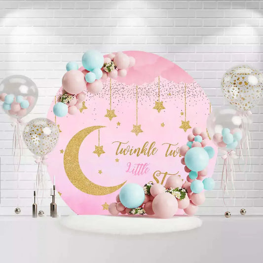 Girls Newborn Baby Shower Round Backdrop Pink Gold Glitter Twinkle Little Stars Moon Circle Background Glitter Plinth Covers SSX0017