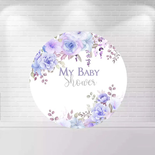 Elegant Purple Floral Baby Shower Round Backdrop and Cylinder Covers