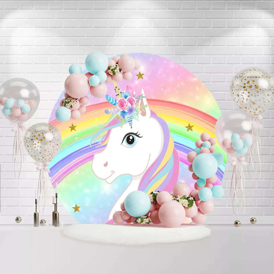 Rainbow Unicorn Party Round Backdrops For Photography Bokeh Girls Birthday Circle Backgrounds Photo Studio Plinth Covers XQ0907