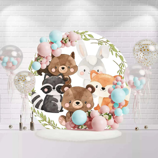Safari Party Background Cartoon Fox Animals Baby Shower Kids 1st Birthday Party Decoration Woodland Round Backdrop XQ1237