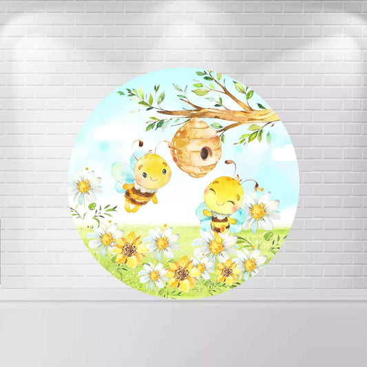 Sweet Bee Day Round Backdrop Yellow Flowers Kids Newborn Baby Shower 1st Birthday Party Circle Background Plinth Covers