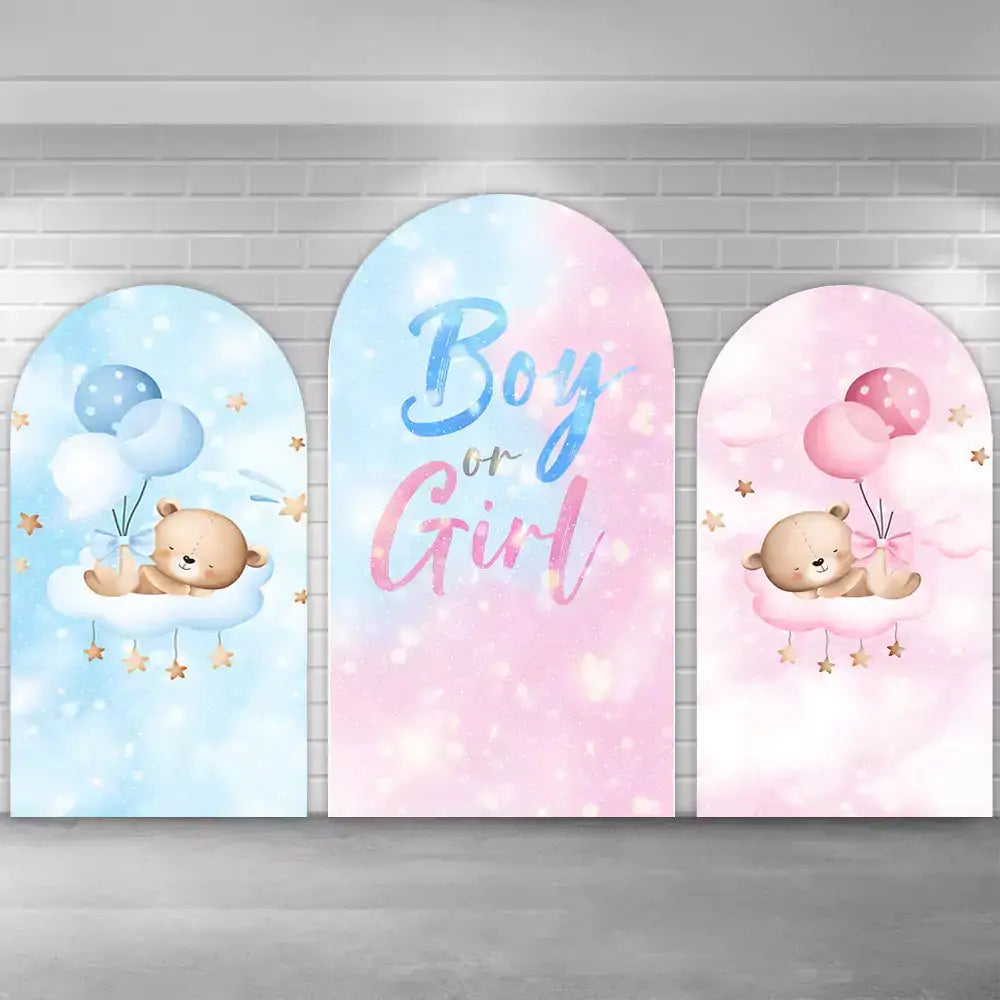 Boy or Girl Gender Reveal Party Arch Backdrop Cover Bear Balloons Pink Blue Newborn Baby Shower Photography Backgrounds